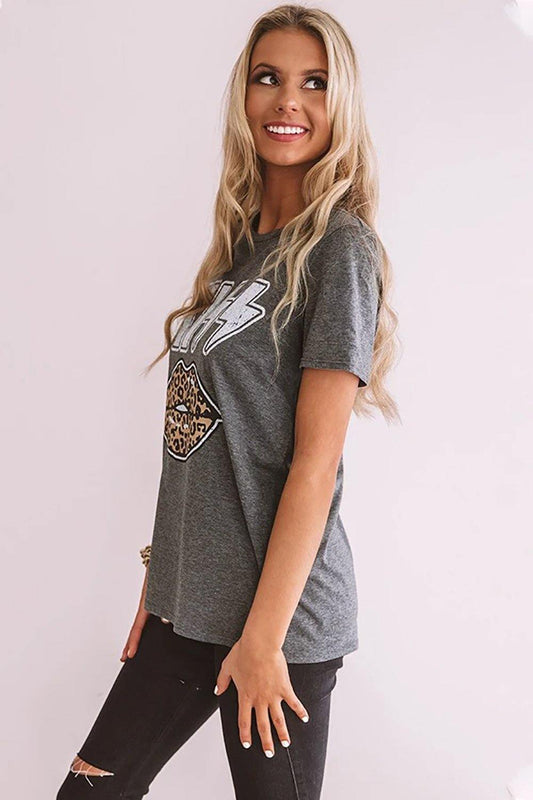 Liliana Green Marble Print Buckstitch Splicing Color Block T-shirt