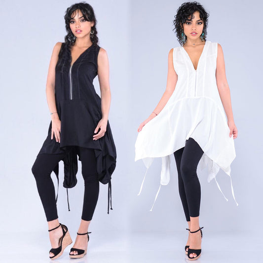 Lorelai Zipper Drawstring Waist Angled Hem Tunic Top