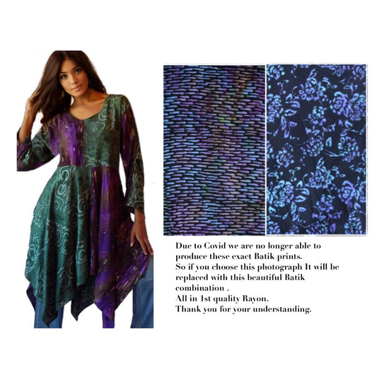 Madilynn Silky Batik Pixie Hem Big Patchwork Tunic Top
