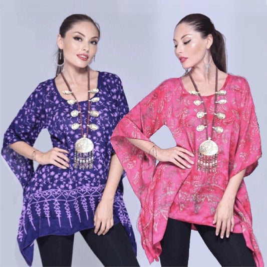 Naomi Boho 2 Hole Gauzy Batik Tunic Top